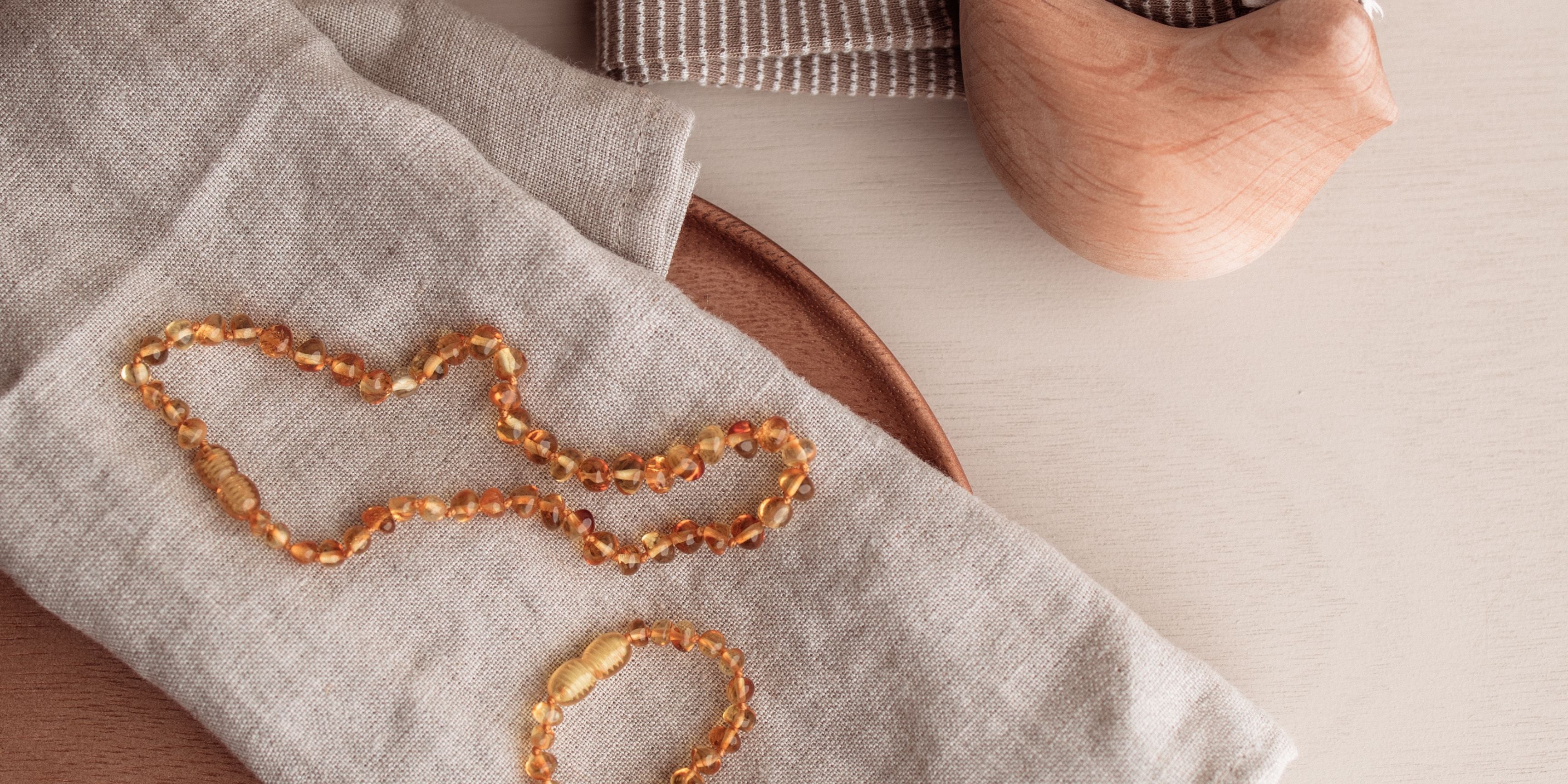 Barnsteen ketting kind - lemon en rozenkwarts - 32 cm
