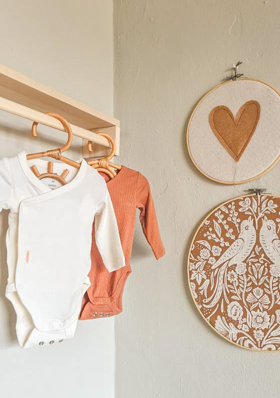 Maak de babykamer compleet met de babykamer accessoires van Jean's goods met schattige vilten babymobielen en rotan babykledinghangers!
