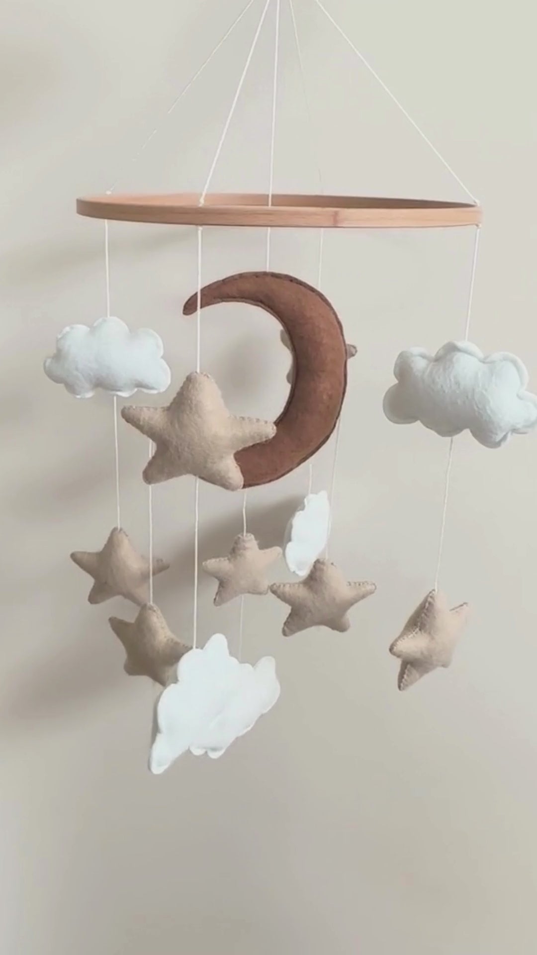 De babymobiel is gemaakt van hoogwaardig vilt, hout en organisch katoen. Het is niet alleen een lust voor het oog, maar ook veilig en duurzaam. Laat je baby rustig in slaap vallen onder de bescherming van de sterrenhemel mobiel.